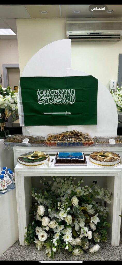 كما توشحت أركان المركز باللونين الأبيض والأخضر وقدمت الضيافة والقهوة السعودية للمراجعين الذين شاركوا بهذه المناسبة الغالية على قلوب الجميع .