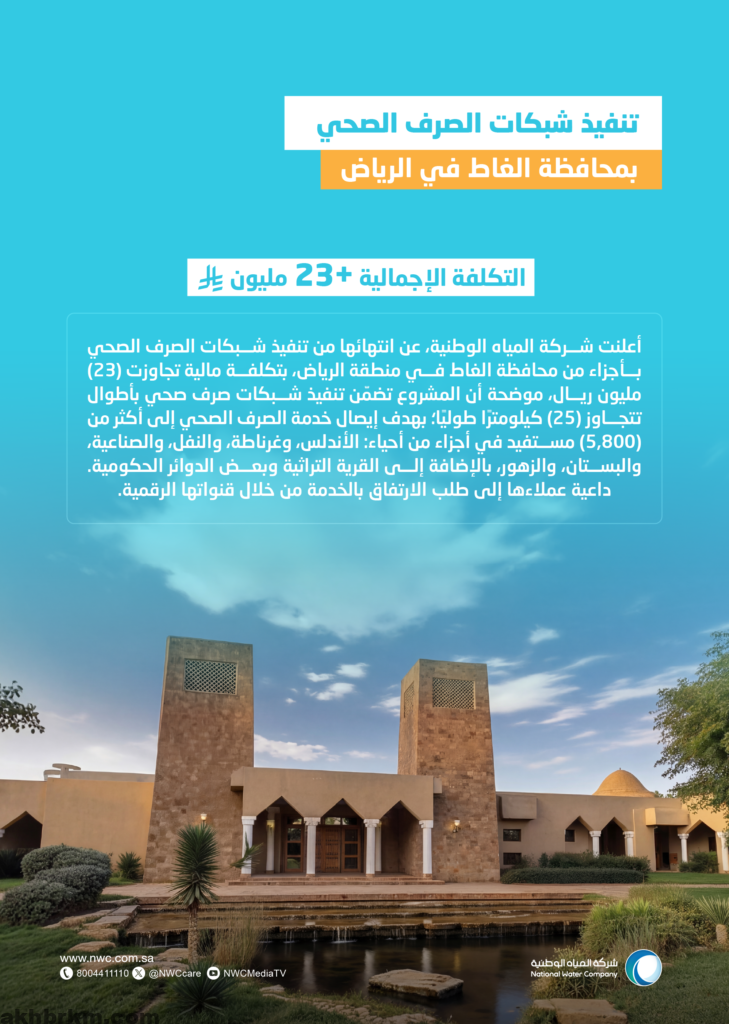 المياه الوطنية تُنتهي من تنفيذ شبكات الصرف الصحي بالغاط بتكلفة تجاوزت 23 مليون ريال.