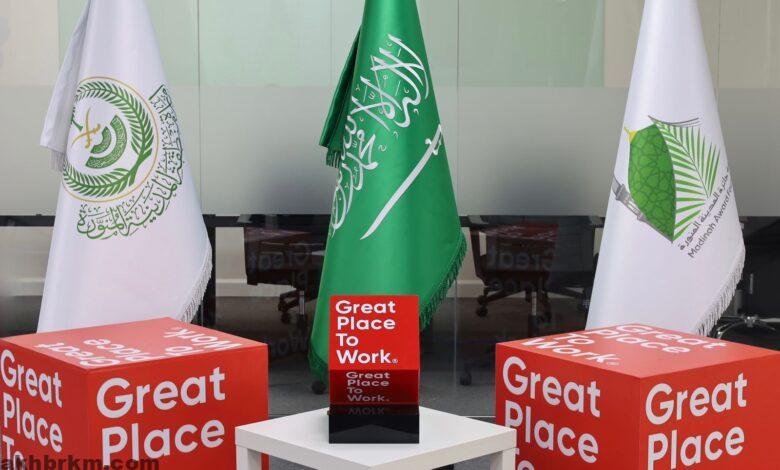 حائزة مؤسسة جائزة المدينة المنورة، على شهادة ‘أفضل بيئة عمل’ لعام 2024 – 2025، -من قبل المنظمة العالمية لثقافة بيئة العمل ” Great Place work ” والجدير بالذكر ان هذه شهاد عالمية تُمنح للمؤسسات والشركات التي تحقق أعلى معايير الرضا والتميز في بيئة العمل وإشارة إلى العالم بأنهم قد أنشأوا ثقافة يحبها الموظفون، بهدف التعريف بثقافة أفضل بيئات العمل المتميزة على المستوى المحلي والدولي، حيث يأتي هذا الإنجاز تتويجاً للجهود الكبيرة التي تبذلها مؤسسة جائزة المدينة المنورة، من خلال طرح مجموعة من الجوائز والمبادرات لبث روح التنافس والإبتكار والإبداع بين القطاعات والأفراد عملاً على تقديم أفضل الخدمات للمواطن والمقيم والزائر للمدينة، انطلاقاً من رؤيتها بأن تكون الجائزة (معياراً للتميز والإبتكار المؤسسي) .