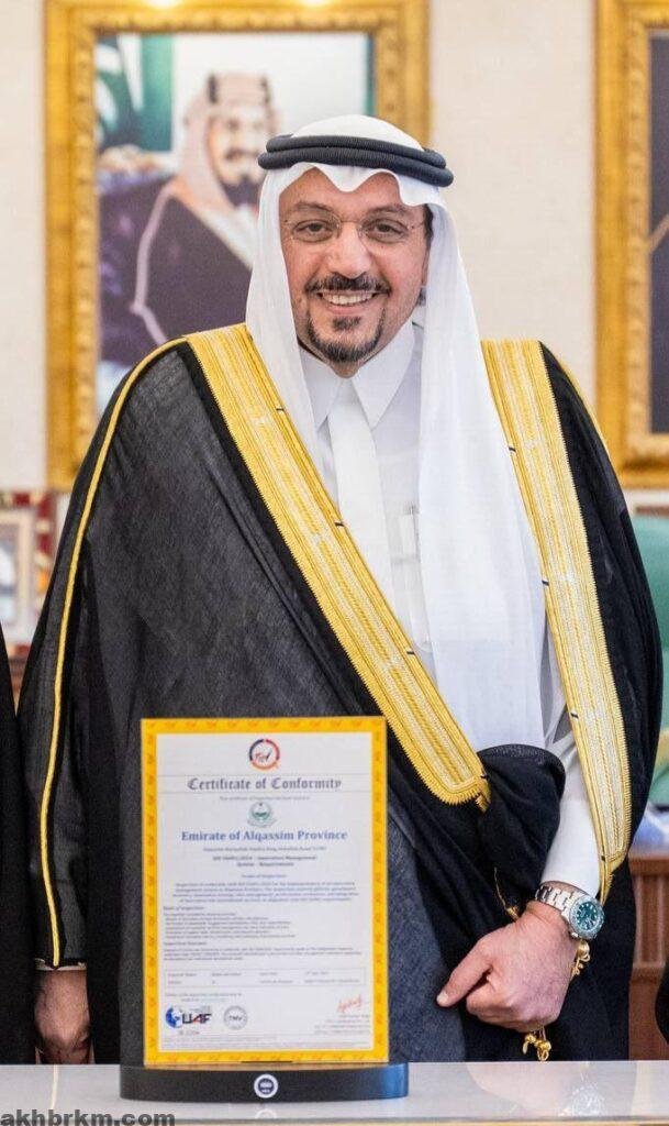 أمير منطقة القصيم يبارك حصول إمارة المنطقة على شهادة الآيزو ISO 56001 لنظام إدارة الابتكار
