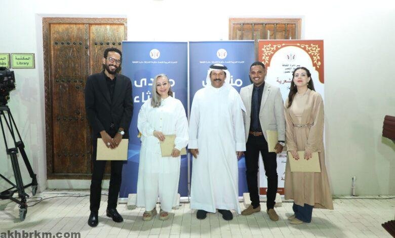 وفي نهاية الأمسية كرّم الشاعر محمد البريكي الشعراء ومقدمة الأمسية، وقدم لهم شهادات التكريم.