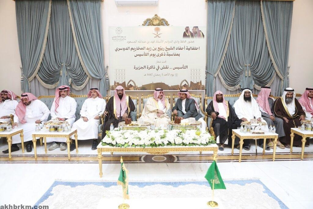 محافظ وادي الدواسر يشهد احتفاء أحفاد ربيع بن زيد المخاريم الدوسري بذكرى يوم التأسيس