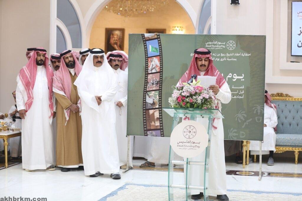 وتضمّن الحفل عرضاً مرئياً بعنوان “أنا الإمام محمد بن سعود”، استعرض سيرة موجزة عن المؤسس، من إنتاج مدارس مواهب الوادي بالمحافظة؛ وألقى الأستاذ ضيف بن مسفر بن ربيع كلمة بهذه المناسبة، أكد فيها أن ذكرى قيام الدولة السعودية الأولى تجسد عمق التاريخ الوطني، وتعكس ما أرسته من منظومة متكاملة للحكم والاستقرار، مشيراً إلى ما تنعم به المملكة من نهضة تنموية شاملة.
