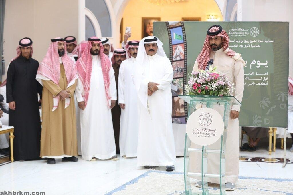 وألقى رئيس مركز المعتلا القديم المخاريم جلعود بن محمد بن ربيع ، كلمة الأحفاد، رحّب فيها بالحضور، مؤكداً أن يوم التأسيس يمثل محطة وطنية راسخة تعزز قيم الانتماء والولاء، مستذكراً الجهود التاريخية للإمام محمد بن سعود في بناء الدولة السعودية الأولى وترسيخ قواعدها، ومشيراً إلى أن الأسرة تستلهم من سيرة جدهم ربيع بن زيد المخاريم الدوسري معاني الإخلاص والوفاء للوطن وقيادته.
