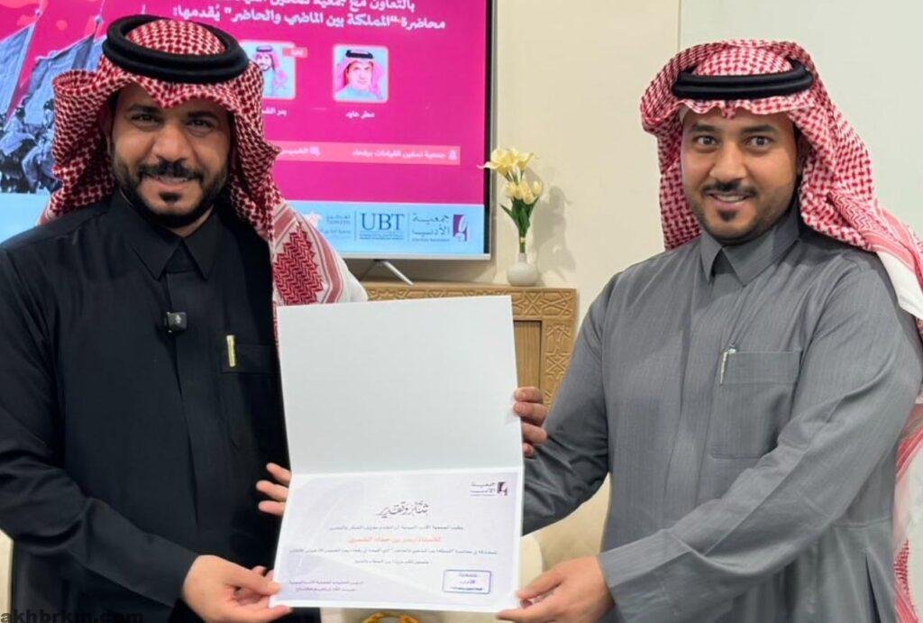 سفراء جمعية الأدب المهنية برفحاء يستعرضون مسيرة الوطن في محاضرة «المملكة بين الماضي والحاضر»