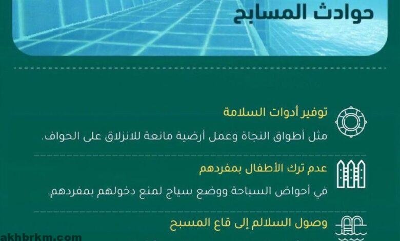 شددت المديرية العامة للدفاع المدني على أهمية المحافظة على سلامة الأطفال من مخاطر حوادث المسابح في المنازل والأماكن التي يرتادها المواطنون والمقيمون، واتباع إرشادات السلامة، والالتزام بالتعليمات المعلنة عبر وسائل الإعلام المختلفة ومواقع التواصل الاجتماعي.