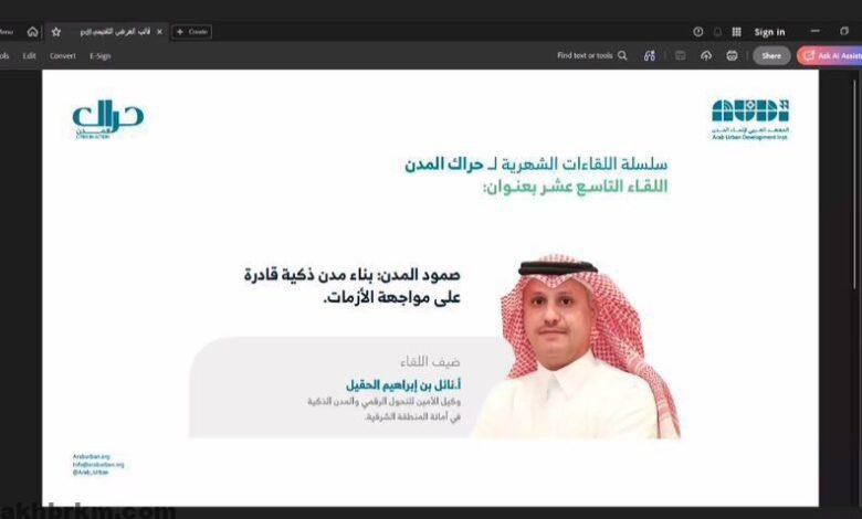 أمانة الشرقية تنظم لقاءً افتراضيًا حول صمود المدن لتعزيز جاهزية المدن الذكية بالتعاون مع المعهد الدولي لإنماء المدن