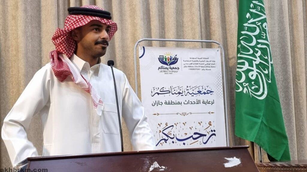 وعقب الإفطار، انطلق البرنامج الخطابي والتوعوي للمبادرة، حيث ألقى سعادة رئيس مجلس إدارة جمعية “يمناكم” لرعاية الأحداث بجازان، الدكتور فيصل بن محمد أبو صيدة، كلمة ضافية عرّف خلالها بأهداف الجمعية ورسالتها السامية، ورؤيتها المستقبلية الرامية إلى تقديم أفضل الخدمات الرعوية والتأهيلية لهذه الفئة الغالية على المجتمع في المنطقة، مؤكداً على أهمية تضافر الجهود المجتمعية لاحتوائهم ودعمهم.