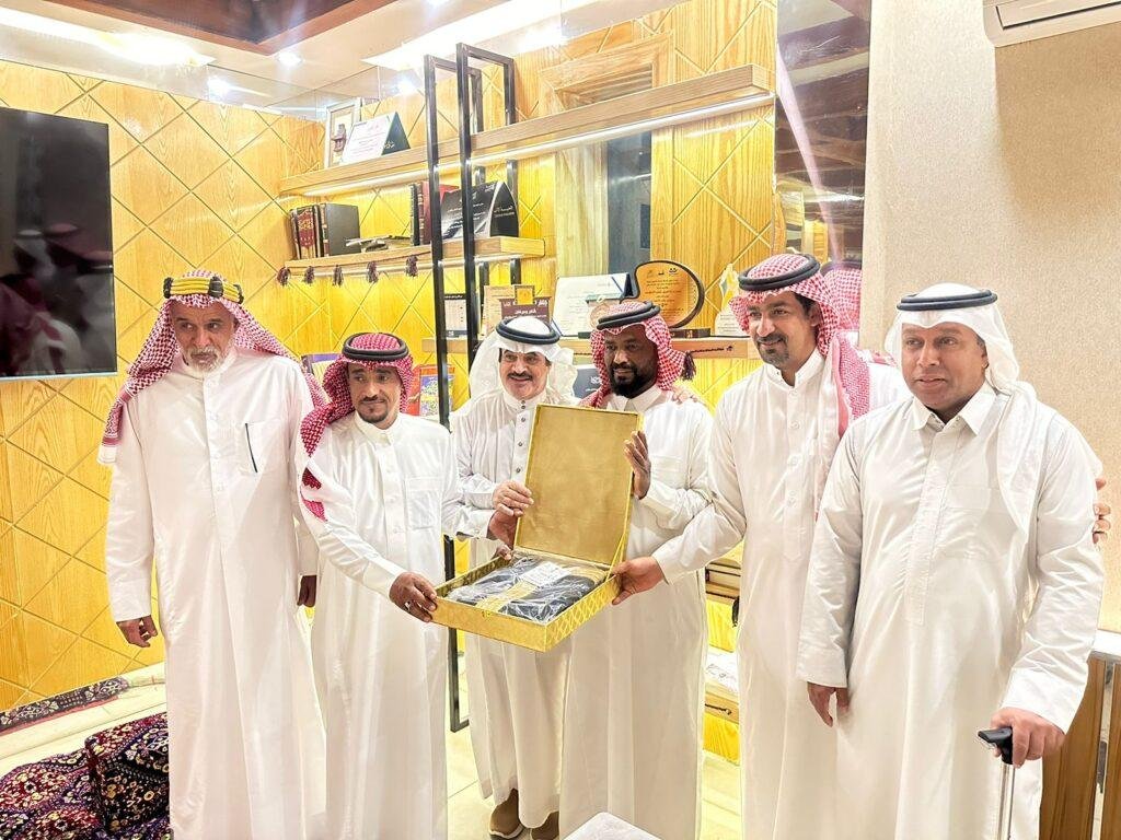 علي هامش أقامت امسية (إبداعات الشعراء في الادب والشعر) التي احتضنها مقهي حبات القهوه الشريك الادبي لهيئه الادب والنشر والترجمه وفي بادرة جميلة ولمسة وفاء معبرة وغير مستغربة قدم الشاعر سعود بن راجي الضوي عدد من البشوت الفاخرة لفرسان الأمسية الثانية من أمسيات نادي تواصل الثقافي .