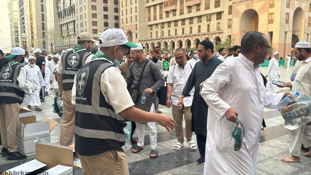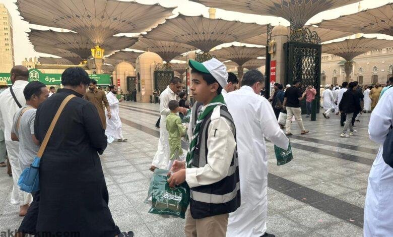 معسكر الخدمة العامة بالمدينة المنورة يعزز خدماته لزوار المسجد النبوي عبر مبادرات إفطار صائم ورعاية الأطفال التائهين