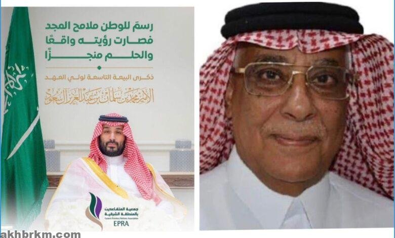 رئيس جمعية المتقاعدين بالمنطقة الشرقية يرفع التهنئة لسمو ولي العهد بمناسبة ذكرى البيعة ” التاسعة “