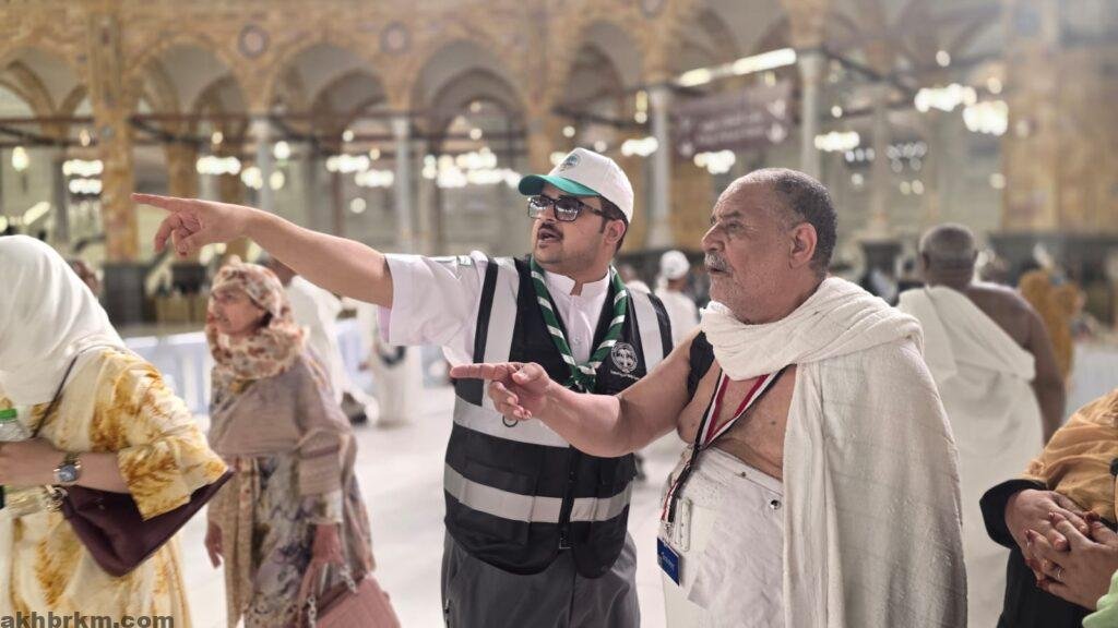 قائد كشفي يُعيد الطمأنينة لمعتمر عند الكعبة