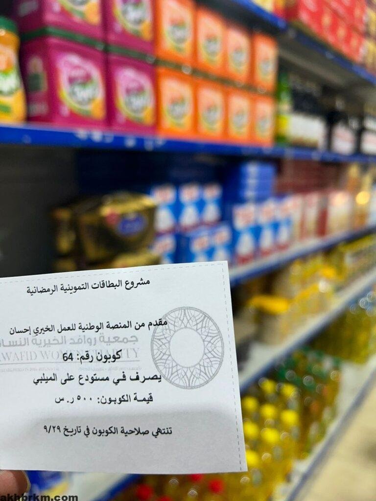 نفذت جمعية روافد الخيرية النسائية بالعيص خلال أيام شهر رمضان المبارك، وبدعم سخي وكريم من المنصة الوطنية للعمل الخيري (إحسان)،مبادرة لتوزيع البطاقات التموينية الرمضانية على مستفيديها، في إطار جهودها المستمرة لدعم الأسر المحتاجة وتعزيز التكافل الاجتماعي.