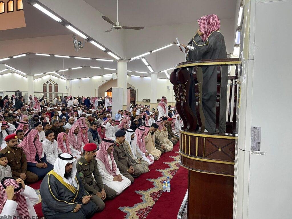 وقد أمّ المصلين الشيخ ممدوح بن طيحان الشراري حيث ألقى خطبة العيد التي تناولت معاني التقوى وشكر نعم الله، وأهمية صلة الأرحام ونشر الفرح والسرور في هذه المناسبة المباركة.
