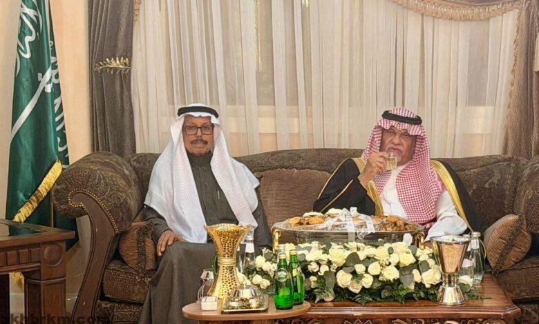 اللواء الركن الشيخ سالم الحربي يستقبل الأمير محمد بن سعد بن خالد في زيارة أخوية بتبوك