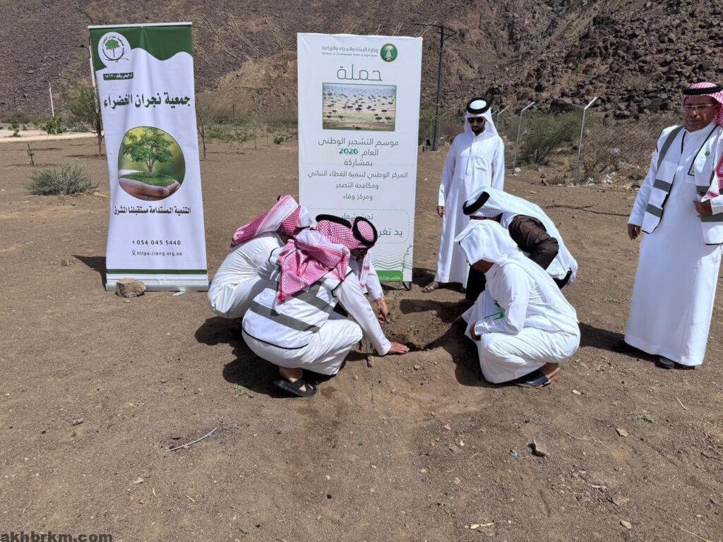 ضمن مبادرات السعودية الخضراء نفّذ مكتب وزارة البيئة والمياه والزراعة بمحافظة حبونا بالتعاون مع بلدية حبونا وجمعية نجران الخضراء اليوم الأربعاء الموافق 1 أبريل 2026 مبادرة تشجير في حديقة بلدية حبونا، بحضور ممثلين من فرع الوزارة بمنطقة نجران، وعدد من منسوبي البلدية والجمعية إلى جانب مهتمين بتنمية الغطاء النباتي.