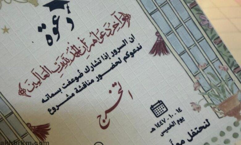 قدّمت طالبات ثانوية الحضن بنجران مشروع تخرجهن يوم الخميس الموافق 14 / 10 / 1447هـ وذلك تحت متابعة الأستاذة حمدة عطشان وبحضور الموجهة الطلابية وفقة آل منصور، ووكيلة شؤون المعلمات والطالبات الأستاذة رابية آل منصور، والأستاذة مها العتيبي، إلى جانب عدد من منسوبات المدرسة.