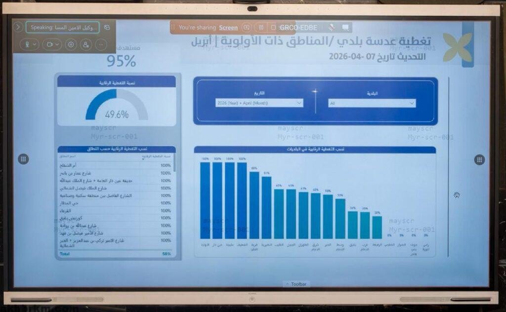 واطّلع معاليه خلال الاجتماع على عرض غرفة عمليات تحسين المشهد الحضري، والذي استعرض جهود الأمانة خلال شهر أبريل، وما تم تنفيذه من خطط استباقية لرصد ومعالجة مظاهر التشوه البصري، من خلال تغطية المناطق ذات الأولوية، إلى جانب تغطية طبقة المدن الرئيسية، إضافة إلى متابعة أداء مقاولي النظافة ضمن النطاق، بما يسهم في رفع كفاءة المعالجة وتحقيق الاستجابة السريعة للملاحظات.
