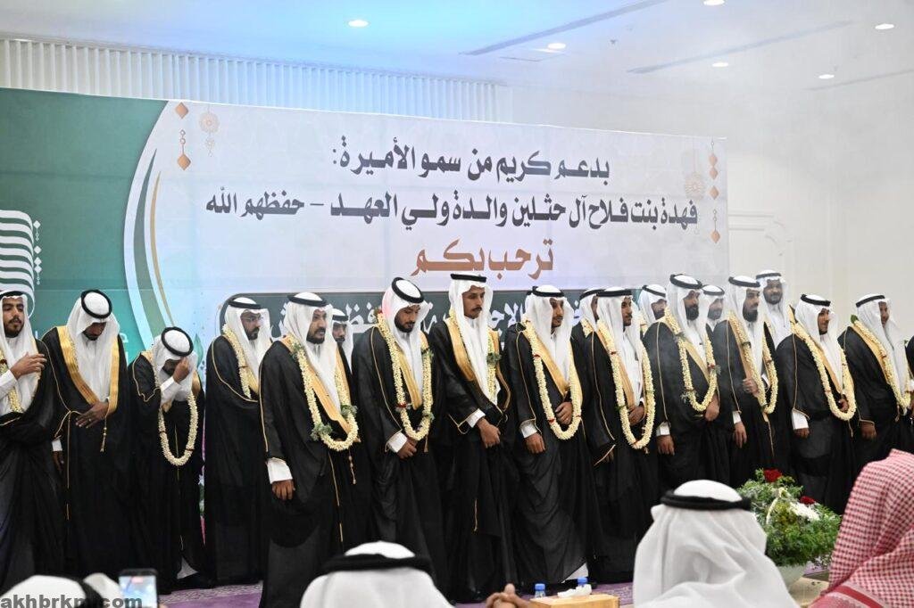 وأعرب رئيس المجلس ومنسوبي الجمعية عن بالغ شكرهم وتقديرهم للدعم الكريم من سمو الأميرة فهدة بنت فلاح آل حثلين والذي كان له الأثر الكبير في إنجاح هذه المبادرة وتحقيق أهدافها. وبين المهدلي بأن اجمالي الدعم البالغ 750000 ريال سعودي تم توزيعه على 50 شاب وشابه عشرون الف ريال للشاب و عشرة الاف للفتاة و ذكر بأنه قد سبق هذا الحفل للزواج الجماعي برامج تأهيلية للمقبلين على الزواج و العمل على المساعدات العينيه من الأجهزة المنزلية والكهربائية وغيرها