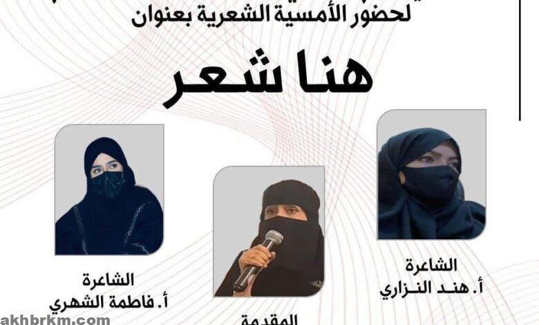 وتستضيف الأمسية الشاعرتين الأستاذة فاطمة الشهري والأستاذة هند النزراري، حيث ستقدمان باقة من النصوص الشعرية التي تعكس تجارب متنوعة ورؤى إبداعية ثرية، فيما تتولى تقديم وإدارة الأمسية الأستاذة ليلى الأحمدي، التي ستقود الحوار وتنسّق فقرات اللقاء بأسلوب يجمع بين التفاعل والطرح العميق.