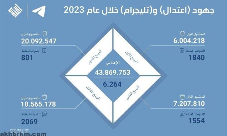 «اعتدال» و«تليغرام» يزيلان 43 مليون محتوى متطرف في 2023 لـ3 تنظيمات إرهابية