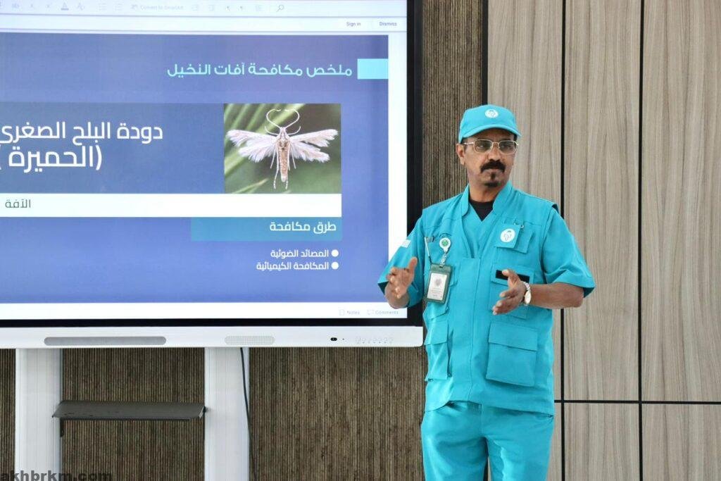 وتناولت الورشة عددًا من المحاور المهمة من أبرزها تطبيق أساليب مكافحة فعالة وآمنة للمحاصيل والحد من المخاطر الصحية والبيئية المرتبطة بالاستخدام الخاطئ للمبيدات، إلى جانب استعراض أفضل الممارسات التي تسهم في تحسين جودة وإنتاجية التمور.