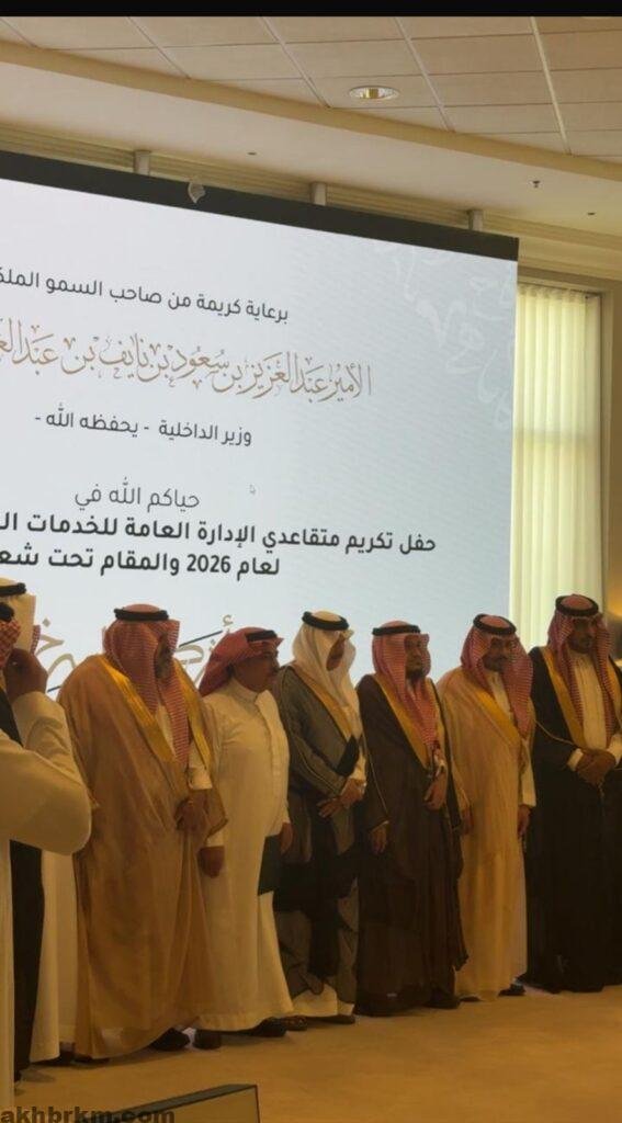 تحت رعاية صاحب السمو الملكي الأمير عبدالعزيز بن سعود بن نايف آل سعود، أُقيم حفل تكريم المتقاعدين من منسوبي الإدارة العامة للخدمات الطبية، وذلك بحضور عدد من القيادات الأمنية والصحية وكبار المسؤولين، في أجواء احتفالية جسّدت معاني الوفاء والتقدير لمن أفنوا سنوات عمرهم في خدمة الوطن.