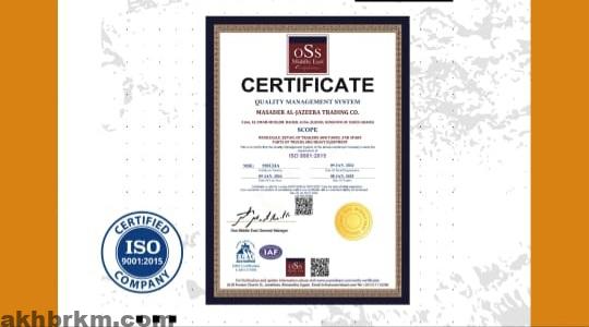 شركة مصادر الجزيرة التجارية ” صرح تجاري يصل العالمية ويحصل على شهادة ISO 9001