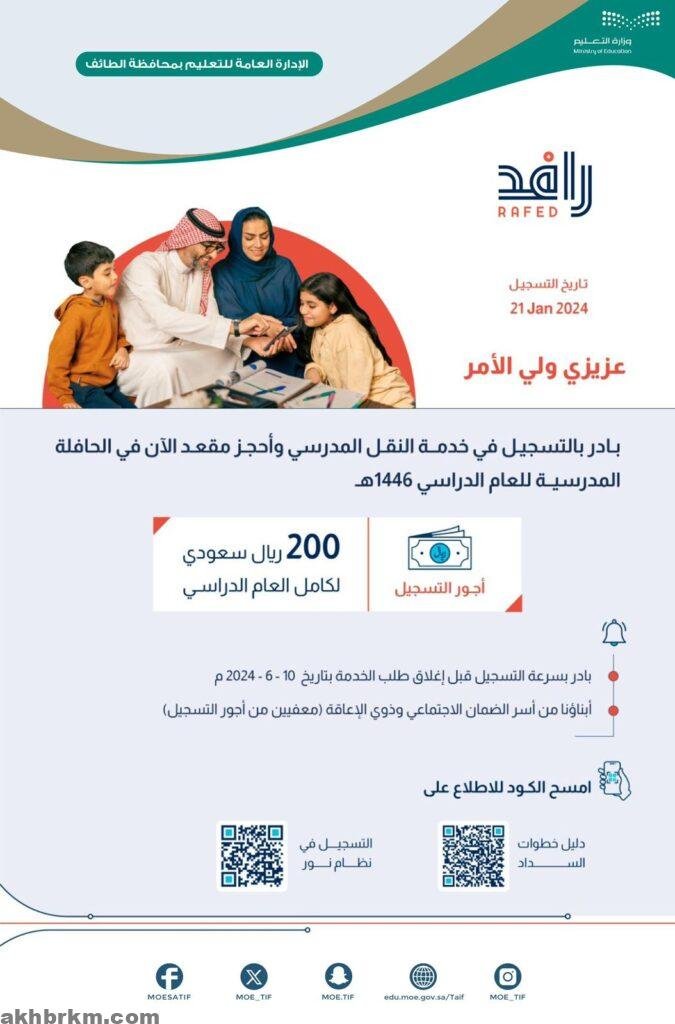 تعليم الطائف بدءالتسجيل في خدمة النقل المدرس للعام القادم 1446
