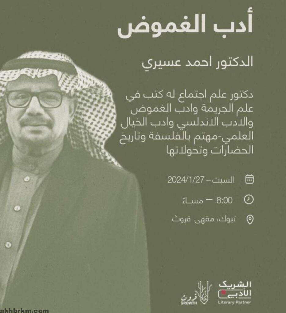 أقيمت مساء امس أمسية أدبية والتي أحياها الدكتور السعودي احمد عسيري ، وحملت عنوان “ ادب الغموض “ وأدار اللقاء الاستاذه منى الهويدي وتطرقت الامسيه الى الغموض كمفهوم عام بداية ثم دخولها في المجال الادبي وعن المدارس التي نهجته كالسريانية والرمزية والعبثية واللاشعور.
