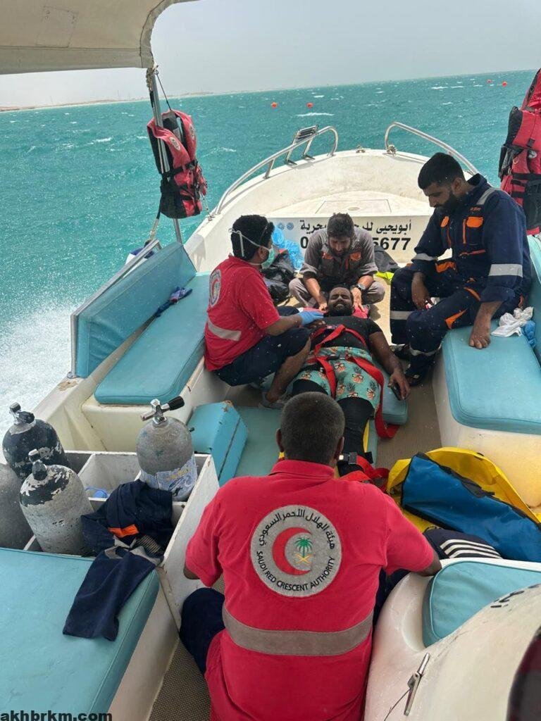 الهلال الأحمر ينقذ مصابًا في عرض البحر بعملية “جويّة – بحريّة” بجزر فرسان