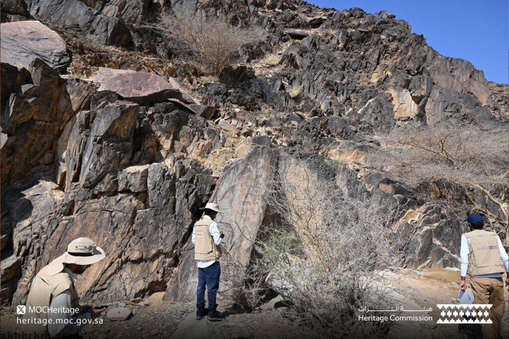 وتمت أعمال المسح الأثري في 30 يوماً حيث تم توثيق 128 موقع تتضمن 991 نقش إسلامي و 151 نقوش قديمة و 1367 فنون صخرية بعدد من المواقع الأثرية وبمشاركة مجموعة من الخبراء السعوديين.