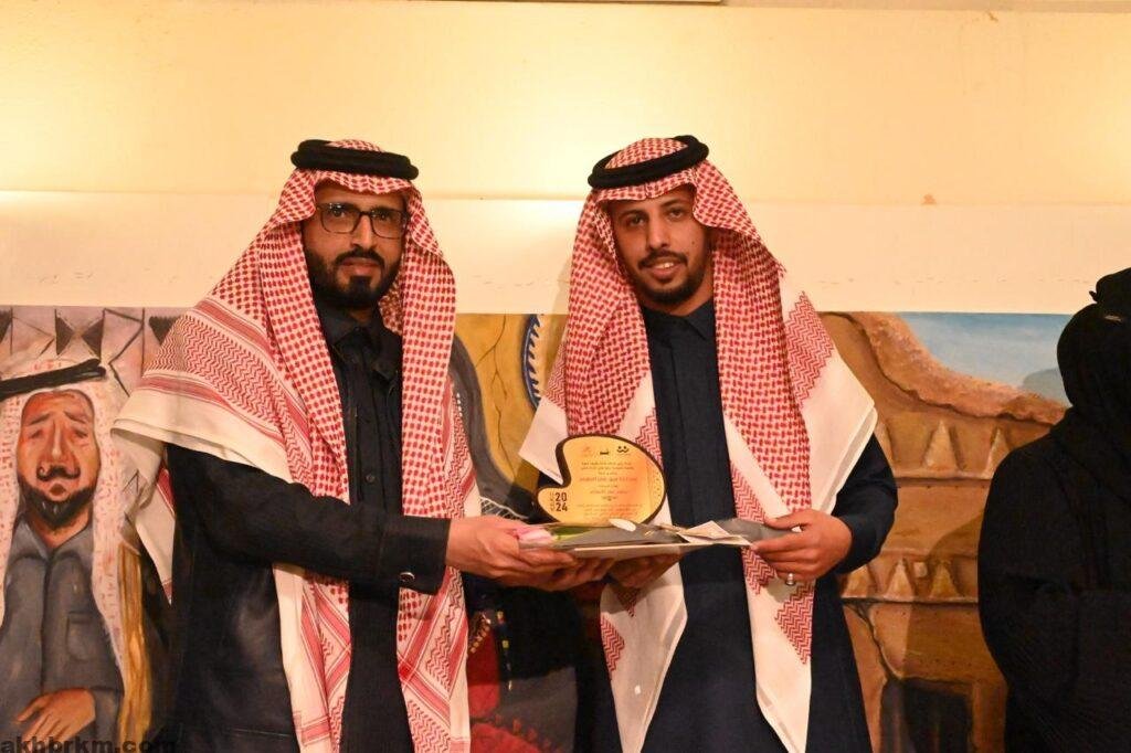 حيث قام مدير جمعية الثقافة والفنون بتبوك الاستاذ ماجد بن ناشئ العنزي بتسليم المشاركين الشهادات والدروع التذكارية