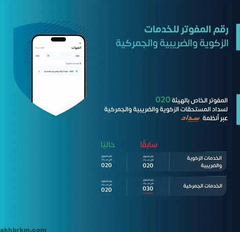 مؤكدةً أن رقم المفوتر (030) المخصص سابقًا للخدمات الجمركية جرى إلغاء التعامل من خلاله واعتماد رقم المفوتر (020) فقط لإتمام عمليات السداد لجميع الخدمات المرتبطة بالهيئة سواءً الزكوية أو الضريبية أو الجمركية.
