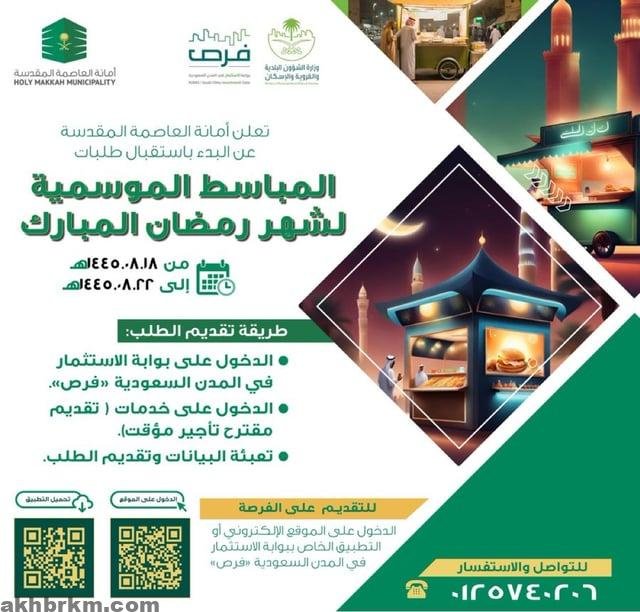أمانة العاصمة المقدسة تعلن استقبال طلبات المباسط الموسمية لشهر رمضان