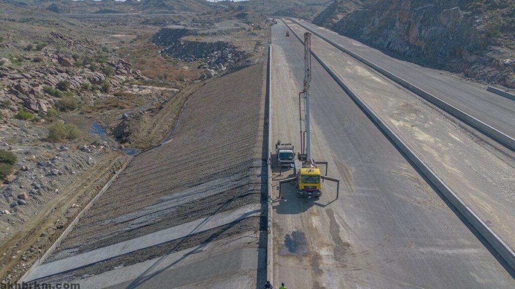 وتعمل فرق وآليات الأمانة على تمهيد ودك أجزاء كبيرة من الطريق بالإضافة إلى سفلتة أجزاء واسعة من الطريق، بعد أن استكملت الأمانة تنفيذ العبّارات وأعمال الحمايات ودرء أخطار السيول وتصريف مياه الأمطار بطول الطريق البالغ إجماليه 25 كيلو مترا، وعرض يتراوح بين 80 إلى 100 متر مما يجعله يستوعب أكبر كثافة مرورية دون عوائق.