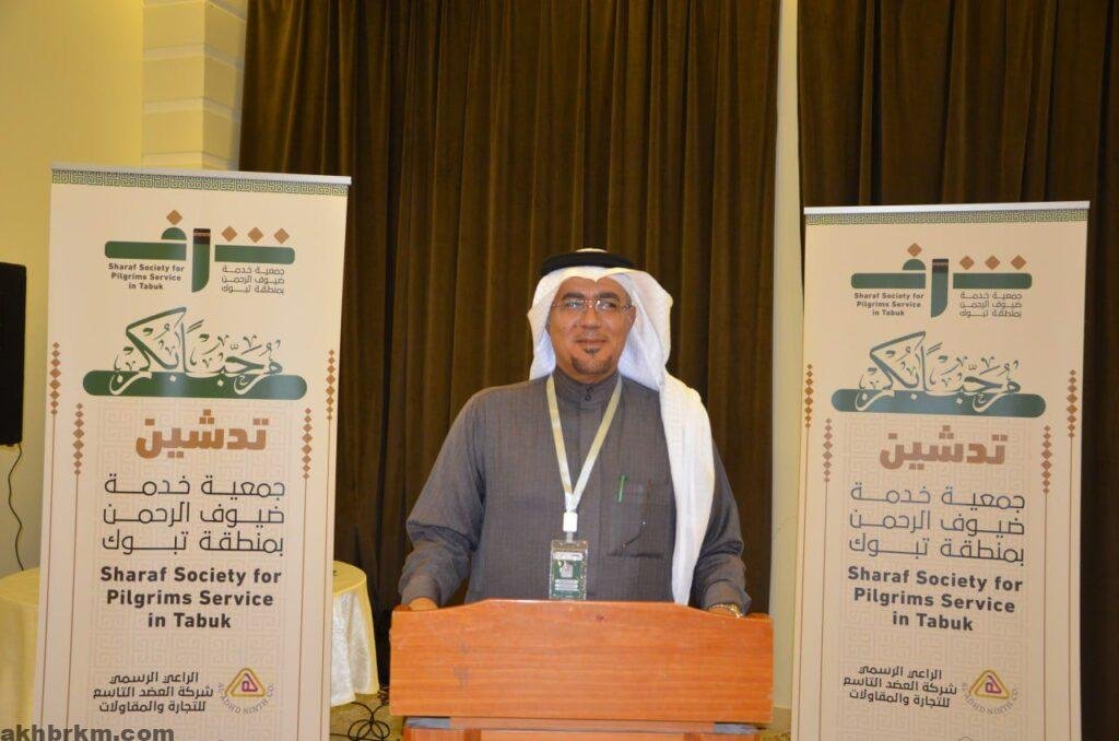 حيث اكد ان جمعية (شرف )تابعه لمنصة العمل التطوعي وهي جمعية غير ربحية بدت الفكرة بدعم من صاحب السمو الملكي الأمير فهد بن سلطان امير منطقة تبوك وتابع في تأسيسها سعادة وكيل الإمارة الاستاذ محمد الحقباني هذة الجمعية عبارة عن كيان تعمل علي خدمة ضيوف الرحمن من حجاج ومعتمرين من كافة دول العالم الذين يدخلون عبر منافد منطقة تبوك في مايتعلق بموسم الحج سيكون عملها مقتصراً علي منفذ حالة عمار اما بقية العام سيكون عملها مختص بالمعتمرين القادمين من خارج المملكة عبر المنافذ الرسمية لمنطقة تبوك .