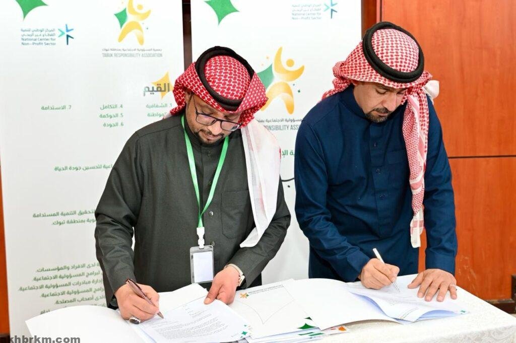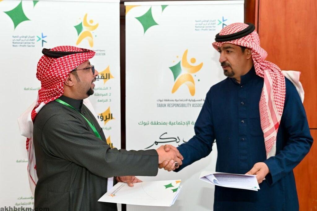 وقعت جمعية المسؤلية الاجتماعية مذكرة تفاهم وتعاون مع صحيفة اخباركم الألكترونية بمقر مسرح جمعية الملك عبد العزيز الخيرية بتبوك مثل الصحيفة بتوقيع المذكرة مدير التحرير الاستاذ/عبد الرحمن الكتبي ومثل جمعية المسؤلية الاجتماعية المدير التنفيذي الاستاذ/علي الزهراني .