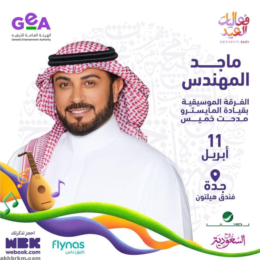 فبرعاية الهيئة العامة للترفيه، ومن تنظيم وإشراف “روتانا للموسيقى” بالتعاون مع “روح السعودية” سيكون الجمهور ضمن “فعاليات العيد” في المملكة العربية السعودية على موعد مع ثلاث حفلات غنائية تقام في ثلاثة مدن، هي الرياض وجدة والدمام، يبدأها الفنان ماجد المهندس تاريخ 11 أبريل 2024 بحفل كبير يقام في فندق “هيلتون-جدة” وسيتولى فيه المايسترو مدحت خميس قيادة الفرقة الموسيقية المصاحبة للمهندس في الحفل.