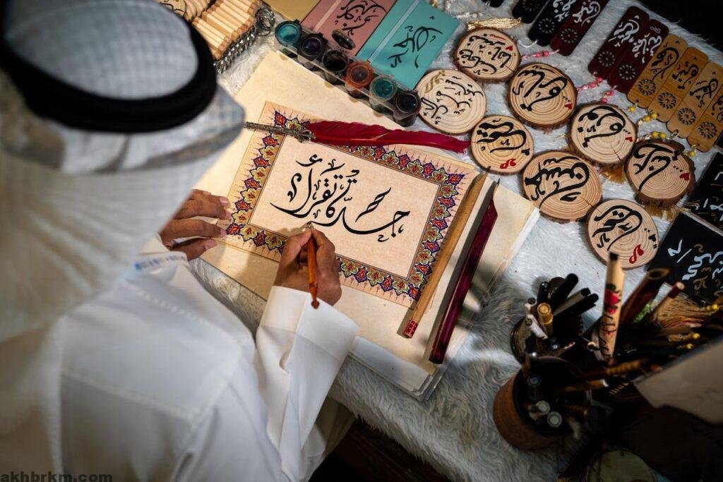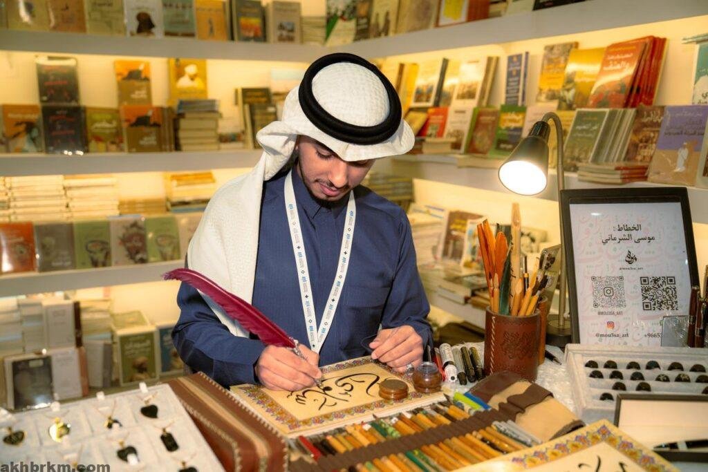 وأسهم الخطّاط عبدالرحمن بن قاسم في هذه التجربة التفاعلية من خلال كتابة أسماء الزوّار وعباراتهم بالخط العربي، مؤكدًا أن المشاركة في المعرض شكّلت مساحة مفتوحة للحوار مع الجمهور، وتعريفه بتاريخ الخط وأنواعه، إضافة إلى تقديم أعمال فنية بسيطة، ترافق القارئ داخل كتبه أو تزيّن فضاءه الشخصي.