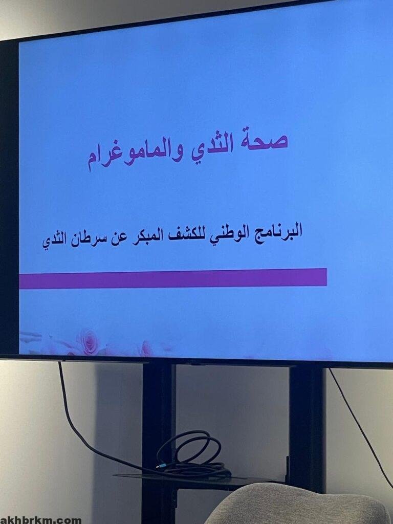 وشمل البرنامح على ورشة عمل عن كيفية الفحص الذاتي قدمتها د. وداد الحازمي وأكدت خلال الورشة على أهمية الفحص الذاتي للصدر لكل سيدة أو فتاة بأن تقوم به من وقت لآخر مشددة على ضرورة أن يتعلمن القيام به كإجراء أولي وقائي ، وإلى الفحص السريري الذي يقوم به المختص والفحص التصويري الماموجرام فله دور كبير بإذن الله في زيادة معدل الشفاء ، كما ذكرت الخطة العلاجية في المراحل المختلفة والخيارات العلاجية لكل مرحلة،وأشارت ” الحازمي ” إلى أهمية الوقاية بإتباع نمط الحياة الصحي والنشاط البدني والمحافظة على الوزن المثالي وختمت الورشة برسالة تعزيز وتأكيد على أن الكشف المبكر عن سرطان الثدي عمل بطولي تستحق الشكر عليه.