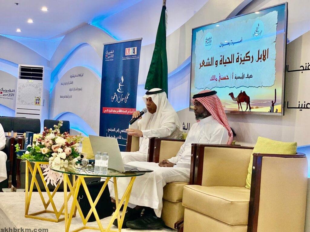 وتناولت الأمسية التي أدارها الدكتور إبراهيم البلوي, علاقة الإنسان العربي بالإبل، وكيف أستلهم منها ومن صفاتها وأعضائها وقاموس لغته اليومية التي يتواصل بها مع من حوله،
