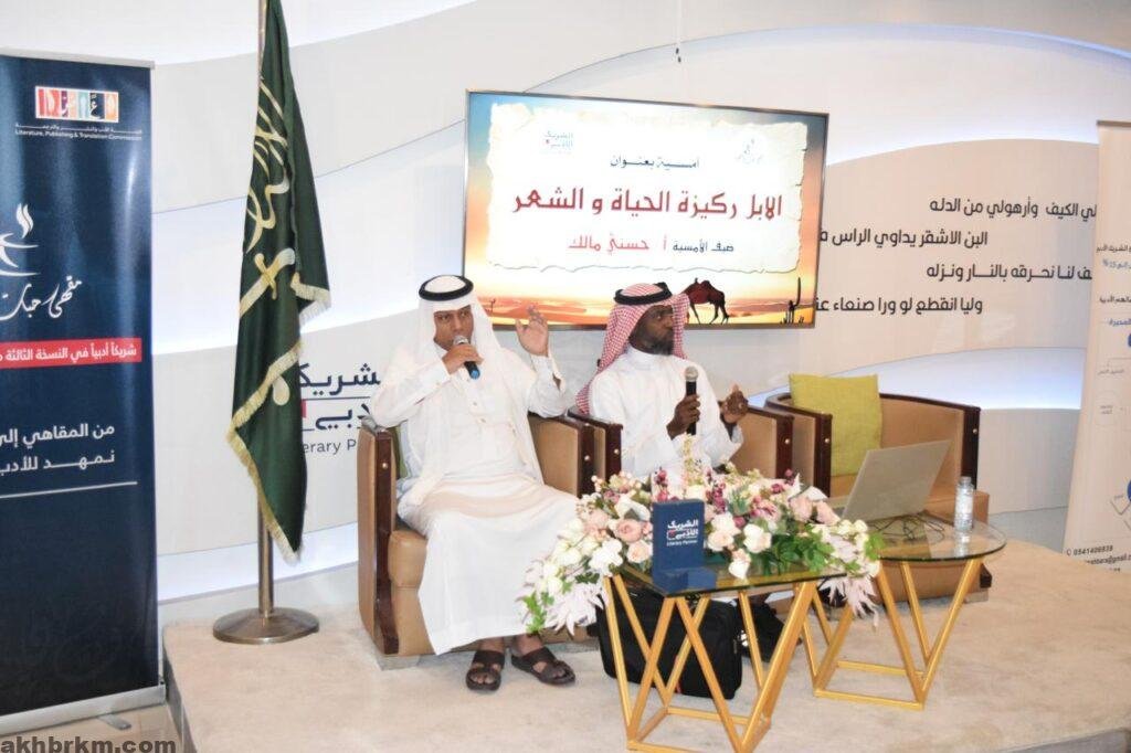 وذهب المحاضر إلى توصيف فضاء الشعر والشعراء والمساحة الشاسعة بينهم وبين الإبل من محبة خاصة، فالإنسان والإبل بينهما تواصل ولهما حياة ممتدة منذ قديم الزمان، فكان الآباء والأجداد يرتحلون من مدينة لأخرى على متون الإبل، حاملة أمتعتهم ومعيشتهم من مكان لآخر.