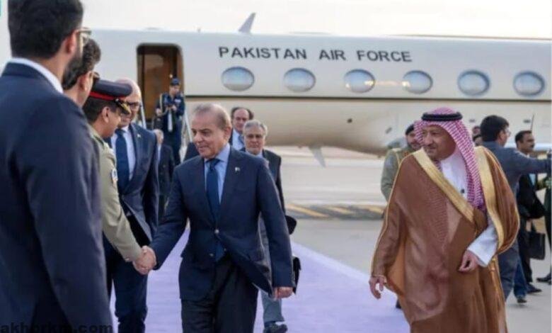 وصل دولة رئيس وزراء باكستان محمد شهباز شريف الرياض اليوم وكان في استقباله لدى وصوله مطار الملك خالد الدولي، معالي نائب وزير الخارجية المهندس وليد بن عبدالكريم الخريجي، وسفير باكستان لدى المملكة أحمد فاروق. ويضم وفد رئيس الوزراء باكستان كل من وزير الخارجية الباكستاني، محمد إسحاق دار و وزير المالية الباكستاني محمد اورنجزيب و وزير الإعلام الباكستاني، عطاء تارر و وزير الطاقة الباكستاني مصدق ملك و مسؤلين حكوميين بارزين آخرين.