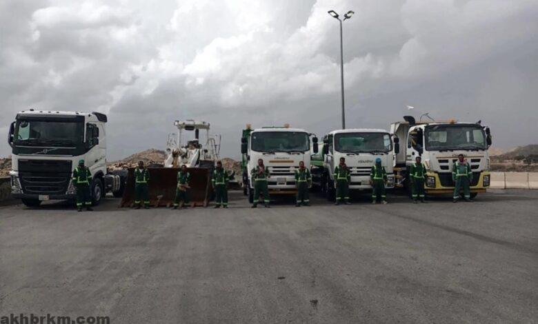 وتم مشاركة 300 معدة وآلية للتعامل مع الحالة المطرية شملت المركبات والمضخات المتنقلة وأجهزة النزح، وانتشر أكثر من 1300 عامل في الميدان،
