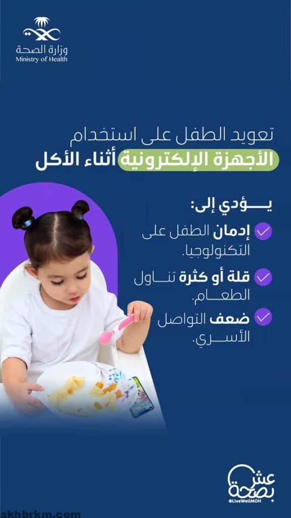 “عش بصحة” تحذر من تعويد الطفل على استخدام الجوال أثناء تناول الطعام