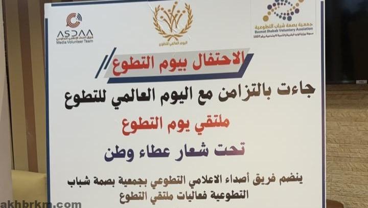 نظَّم فريق أصداء الإعلامي التطوعي بجمعيّة بصمْة شباب التطوعيّة بالقنفذة بقيادة الإعلاميّة الأستاذة ليلى الشيخي ملتقي يوم التطوع بالتزامن مع اليوم العالمي للتطوع الذي يصادَّف 5 ديسمبر من كل عام حيث أقيّم الملتقي مساء الخميس في القنفذة بِمركز وقت العنايّة للسيدات .