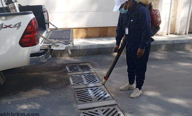وسيرت الأمانة فرق الرش اليدوي والضبابي في كافة الأحياء، وتم رش وتعقيم حاويات النفايات بمختلف الأنواع والاحجام، وتعزيز تواجد الفرق في المنتزهات والحدائق العامة والمواقع السياحي واختيار برنامج مناسب للرش والمكافحة الحشرية، والوقوف على المواقع الرطبة المحصورة ومعالجة التجمعات المائية والمواقع المحتملة لتشكل بؤر حشرية.