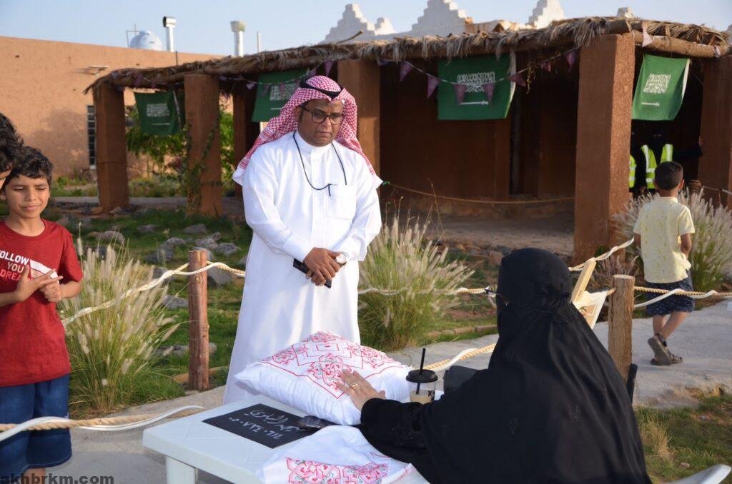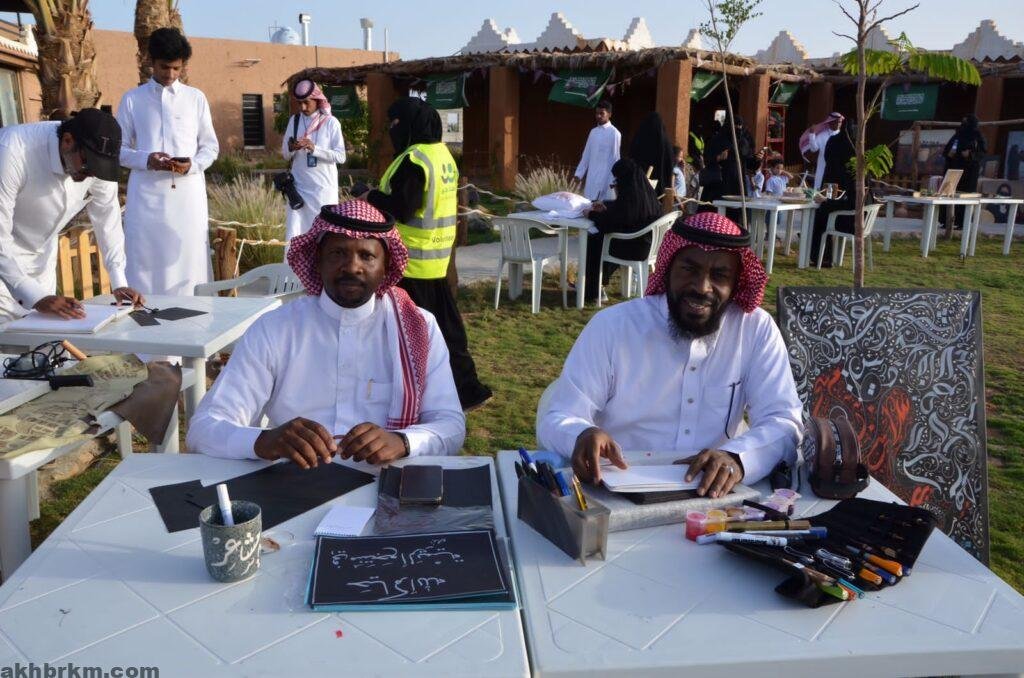 وشارك في هذا المعرض خطاطين الفريق بهذه المناسبة ومدربي الخوص والتطريز ومدربي إعادة التدوير