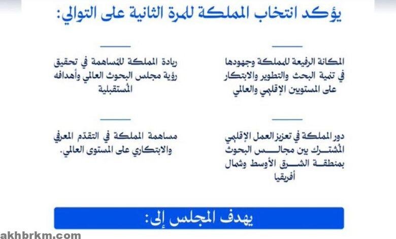 ويُؤكد إعادة انتخاب مُمثل المملكة ومنطقة الشرق الأوسط وشمال أفريقيا لهذا المنصب القيادي في مجلس البحوث العالمي للمرة الثانية على التوالي منذ إنشاءه في عام 2012م، ثقة المجلس بدور المملكة الرائد للمُساهمة في تحقيق رؤية المجلس وأهدافه المُستقبلية، كذلك المكانة الرفيعة للمملكة وجهودها في تنمية البحث والتطوير والابتكار على المستويين الإقليمي والعالمي، ودورها البارز في تعزيز العمل الإقليمي المُشترك بين مجالس البحوث بمنطقة الشرق الأوسط وشمال أفريقيا لتقوية حضورها ومُساهمتها في تقدّم المعرفة والابتكار على المستوى العالمي.